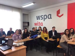 U okviru ovog programa razmjene naši nastavnici mr.sc. Aleksandar Maksimović i BA Selma Berbić boravili su na partnerskoj instituciji WSPA u Poljskoj u periodu 06. 03.- 11.03.2017. godine. Tokom boravka ostvarili su kontakte sa predstavnicima institucije domaćina, od čega je posebno koristan bio onaj sa zaposlenicima Ureda za međunarodnu saradnju WSPA. Poseban značaj ovoj mobilnosti daje učešće naših nastavnika na treninzima i radionicama koje su organizovane na WSPA, na kojima su učestvovali zajedno sa kolegama iz Italije, Njemačke, Engleske, Gruzije, Litvanije, Albanije, Srbije i Kine, koji su istovremeno boravili na mobilnosti na WSPA.