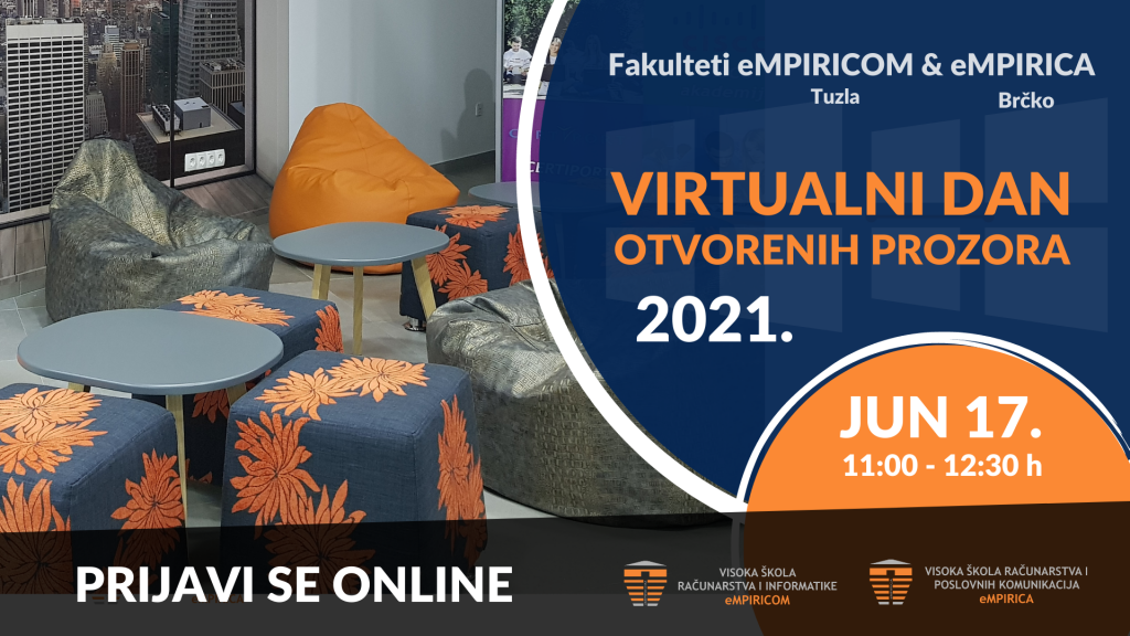 Pridruži nam se na Virtualnom danu otvorenih prozora u četvrtak, 17.06.2021. godine s početkom u 11:00 sati te saznaj sve što te zanima o samom studiju od našeg direktora mr.sc. Muhdina Mujačića, voditeljice Ureda za međunarodnu saradnju i profesorice Selme Berbić, te našeg bivšeg studenta a sada asistenta Dejana Maskijevića.
