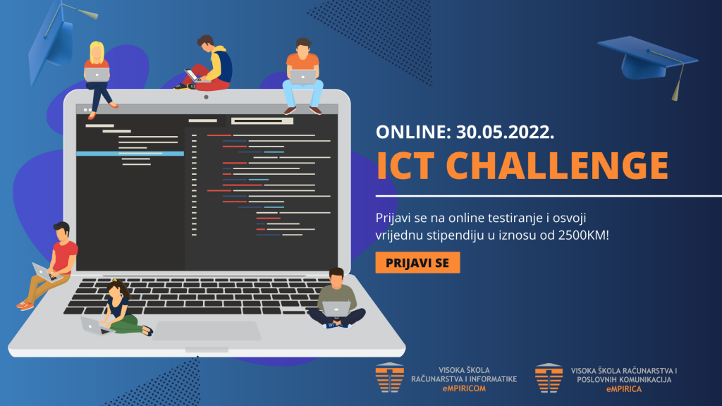Ako voliš informatiku, ovo je izvrsna prilika za tebe! Pozivamo te da se prijaviš na testiranje u znanju iz oblasti informacijsko komunikacijskih tehnologija koje se održava ONLINE i osvojiš vrijednu stipendiju za upis na Visoku školu eMPIRICOM u Tuzli.